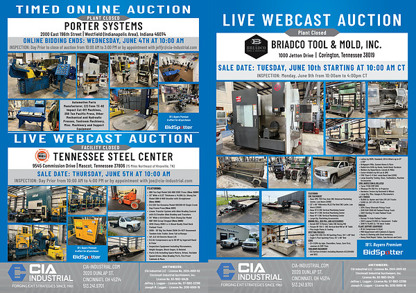 AUCTIONEERS: CIA Industrial LLC- License No. 2024-0001-02 Cincinnati Industrial Auctioneers, Inc. License No. 63-1983-10439 Jeffrey L. Luggen – License No. 57-1983-33789 Joseph M. Luggen – License No. 2010-0000-19