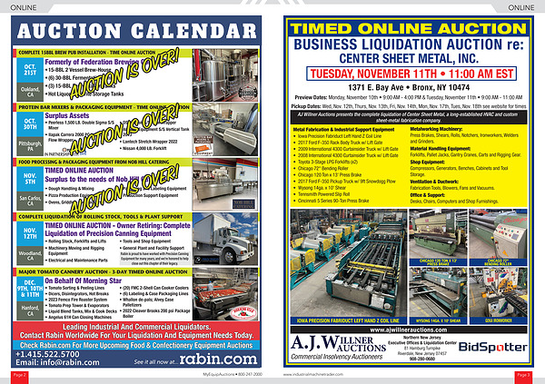 TIMED ONLINE AUCTION BUSINESS LIQUIDATION AUCTION re: CENTER SHEET METAL, INC.