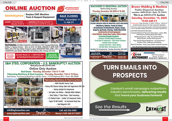 Saturday, December 13, 2025 10:00 AM CT Preview Date: Friday, December 12, 2025 • 10:00 am- 3:00 pm CT EVERYTHING SELLS TO THE HIGHEST BIDDER! This is your chance to purchase quality, well-maintained equipment from a reputable welding, fabrication, and machine shop that has