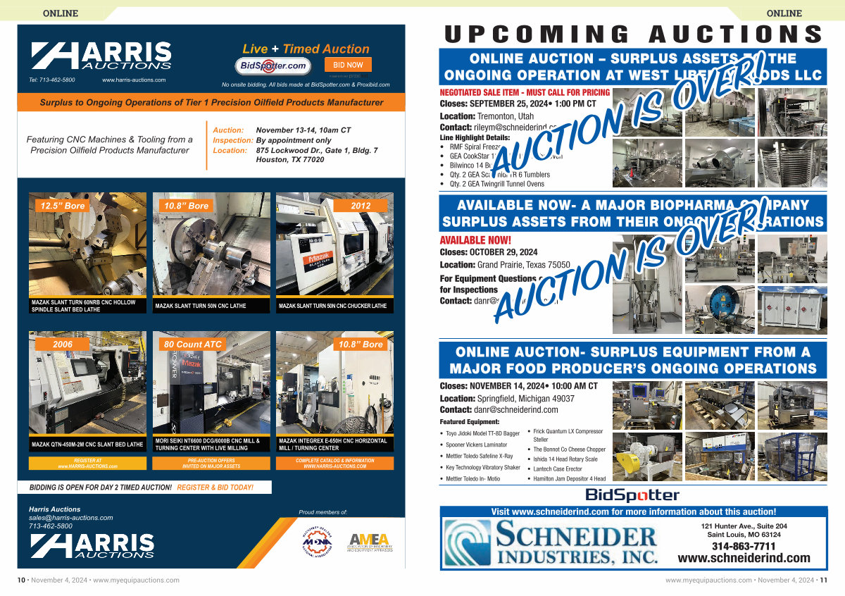 ONLINE AUCTION- SURPLUS EQUIPMENT FROM A MAJOR FOOD PRODUCER’ S ONGOING OPERATIONS