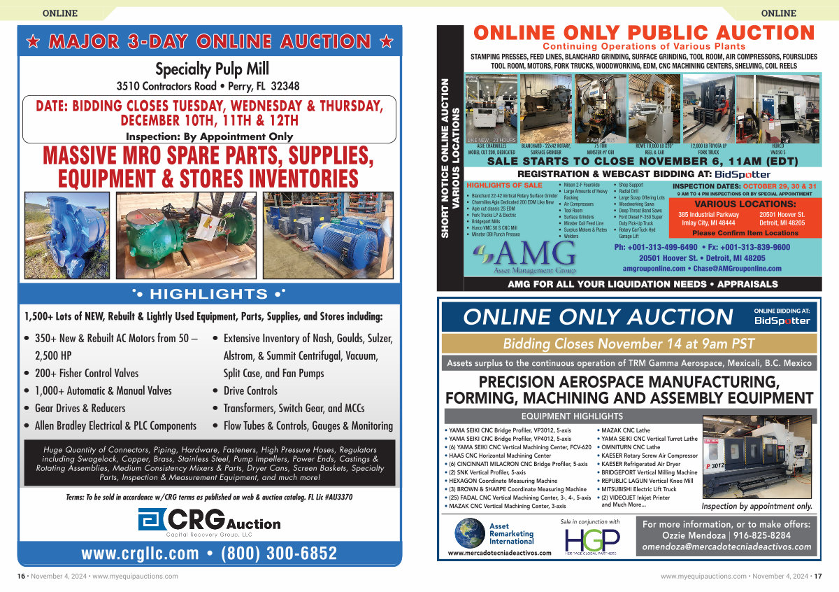 ONLINE ONLY PUBLIC AUCTION Continuing Operations of Various Plants