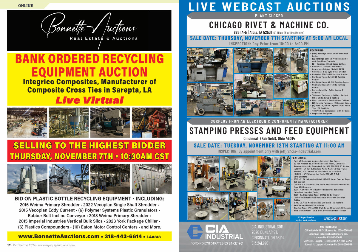 EQUIPMENT AUCTION Integrico Composites, Manufacturer of Composite Cross Ties in Sarepta, LA Live Virtual