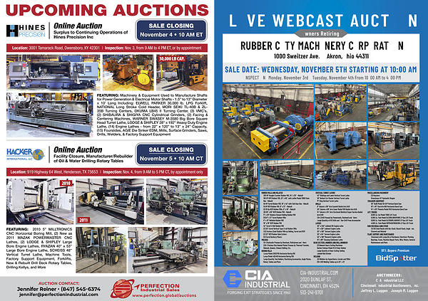 FEATURING: Machinery & Equipment Used to Manufacture Shafts for Power Generation & Electrical Motor Shafts- 1.5” to 13” Diameter x 10’ Long Including: ELWELL PARKER 30,000 lb. LPG Forklift, NATIONAL Long Stroke Cold Header, MORI SEIKI TL-40B & ZL- 35B Turning Centers, OKUMA LB45 II Turning Center,( 3) VMC’ s,( 2) SHIBAURA & SHIGIYA CNC Cylindrical Grinders,( 2) Facing & Centering Machines, WARNER SWASEY M-3580 Big Bore Square Head Turret Lathe, LODGE & SHIPLEY 28” x 192” Heavy Duty Engine Lathe,( 14) Engine Lathes- from 22” x 120” to 13” x 24” Capacity,( 15) Fourslides, AGIE Die Sinker EDM, Mills, Surface Grinders, Saws, Drills, Welders, & Factory Support Equipment