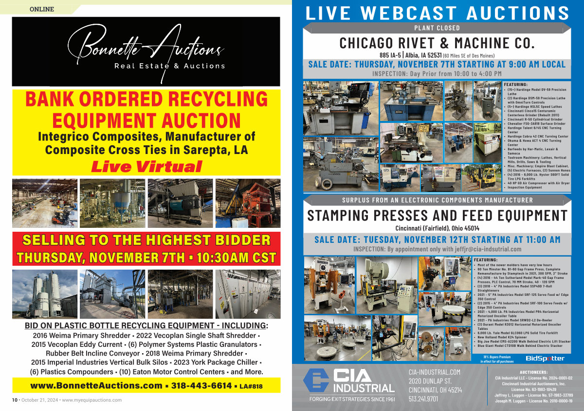 BANK ORDERED RECYCLING EQUIPMENT AUCTION Integrico Composites, Manufacturer of