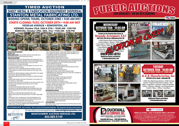 For more details or to view equipment see: www. montgomeryauctions. com MONTGOMERY AUCTION SERVICES LTD. 403-885-5149