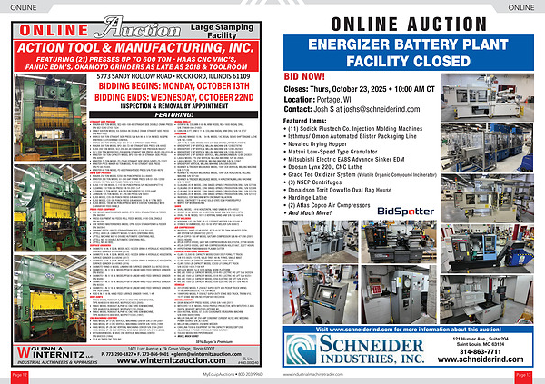Closes: Thurs, October 23, 2025 • 10:00 AM CT Location: Portage, WI Contact: Josh S at joshs @ schneiderind. com