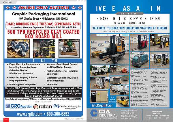 DATE: BIDDING ENDS TUESDAY, SEPTEMBER 16TH Inspection: Monday, September 15th from 9:00 AM – 4:00 PM 500 TPD RECYCLED CLAY COATED BOX BOARD MILL