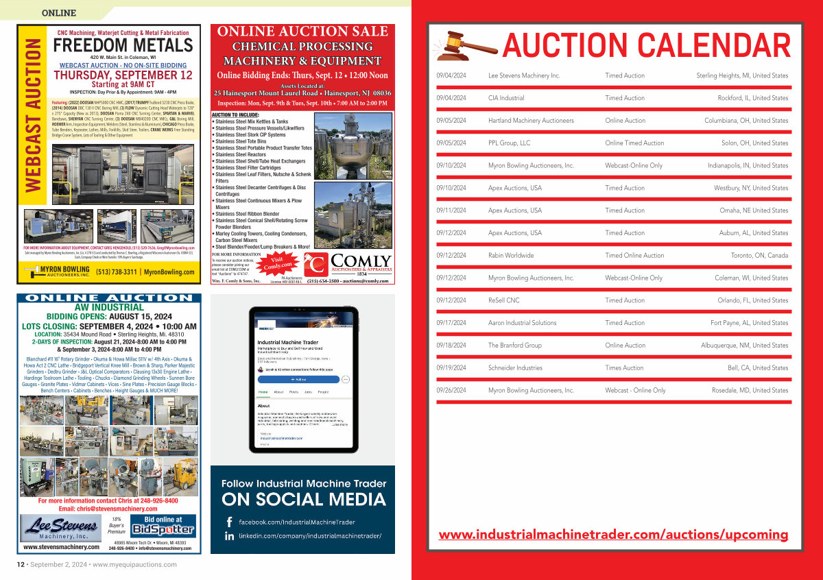 ONLINE AUCTION AW INDUSTRIAL BIDDING OPENS: AUGUST 15, 2024 LOTS CLOSING: SEPTEMBER 4, 2024 • 10:00 AM LOCATION: 35434 Mound Road • Sterling Heights, Mi. 48310 2-DAYS OF INSPECTION: August 21, 2024-8:00 AM to 4:00 PM & September 3, 2024-8:00 AM to 4:00 PM