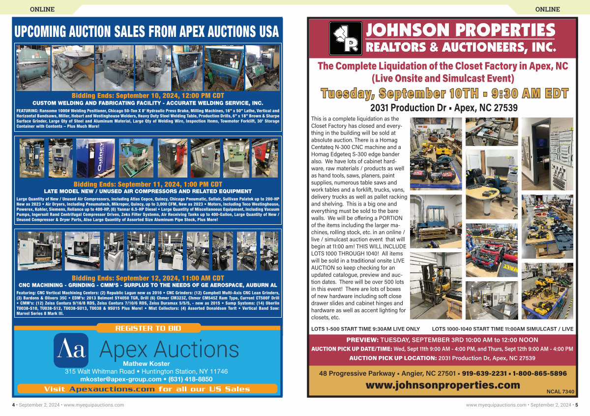 The Complete Liquidation of the Closet Factory in Apex, NC( Live Onsite and Simulcast Event) Tuesday, September 10TH • 9:30 AM EDT 2031 Production Dr • Apex, NC 27539
