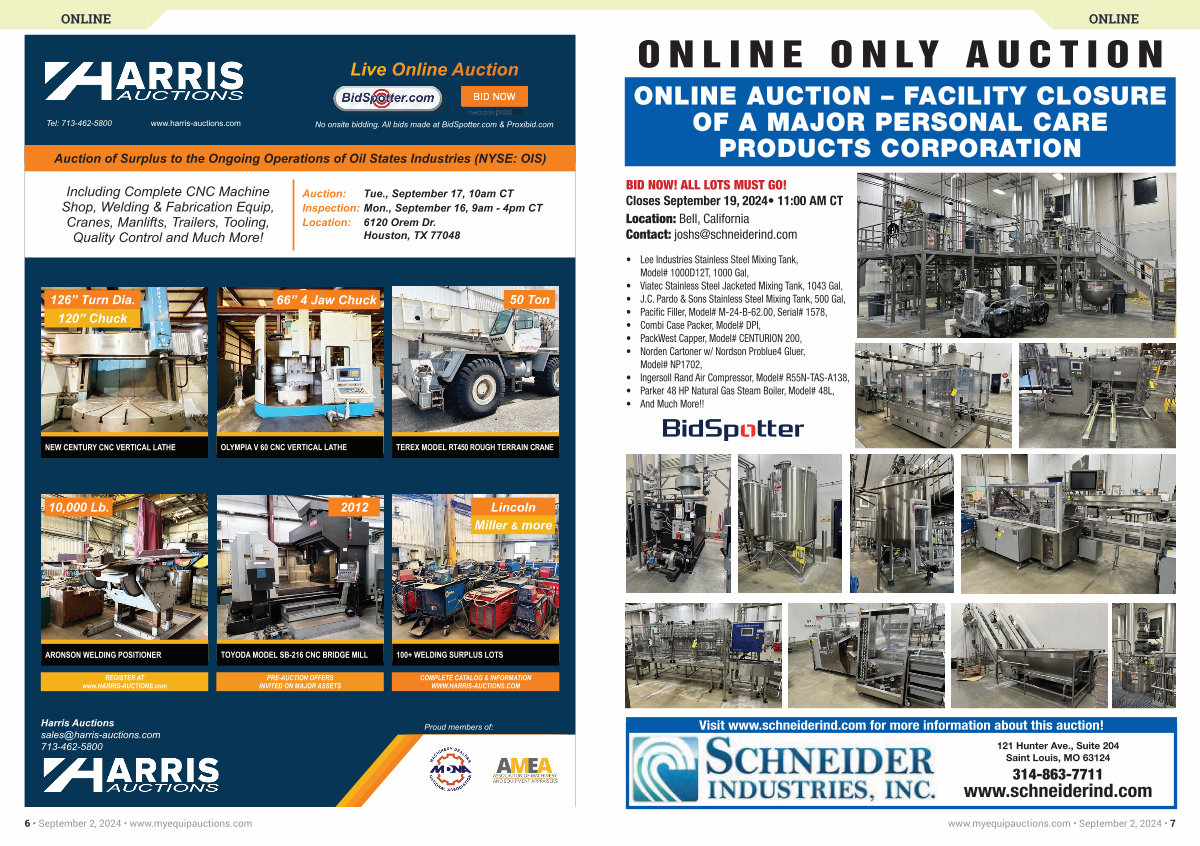 Auction: Tue., September 17, 10am CT Inspection: Mon., September 16, 9am- 4pm CT Location: 6120 Orem Dr.