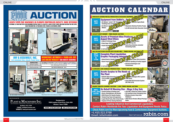 MAJOR TOMATO CANNERY AUCTION- 3-DAY TIMED ONLINE AUCTION