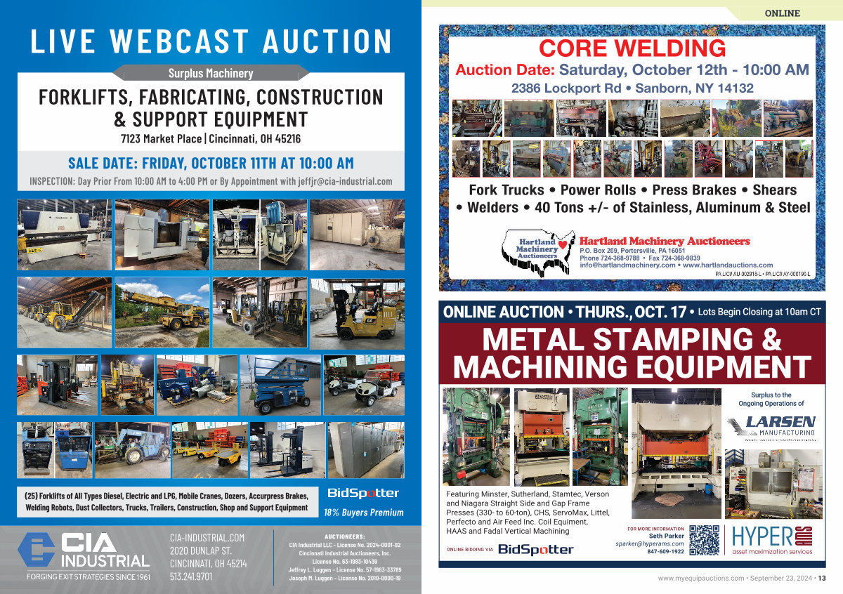 SALE DATE: FRIDAY, OCTOBER 11TH AT 10:00 AM INSPECTION: Day Prior From 10:00 AM to 4:00 PM or By Appointment with jeffjr @ cia-industrial. com