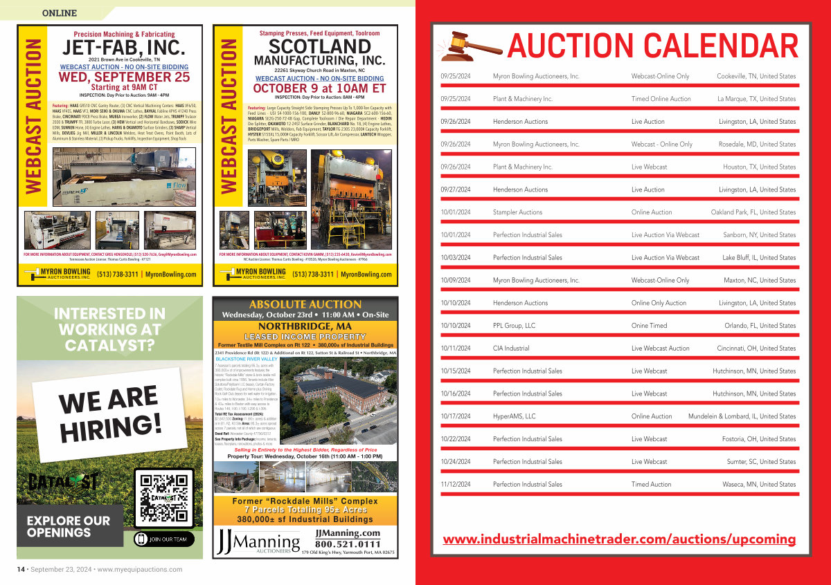 FOR MORE INFORMATION ABOUT EQUIPMENT, CONTACT KEVIN GAMM,( 513) 235-6430, Kevin @ MyronBowling. com NC Auction License: Thomas Curtis Bowling- # 10526; Myron Bowling Auctioneers- # 7966