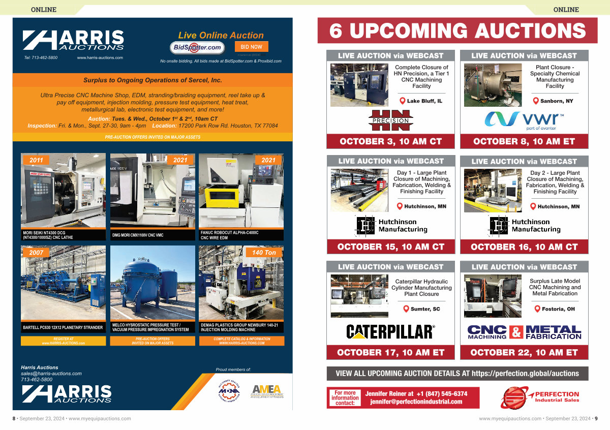 Jennifer Reiner at + 1( 847) 545-6374 jennifer @ perfectionindustrial. com www. myequipauctions. com • September 23, 2024 • 9