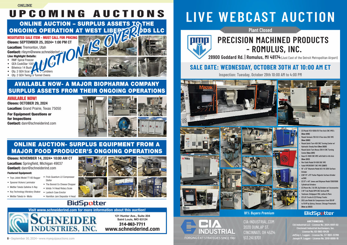 AUCTIONEERS: CIA Industrial LLC- License No. 2024-0001-02 Cincinnati Industrial Auctioneers, Inc. License No. 63-1983-10439 Jeffrey L. Luggen – License No. 57-1983-33789 www. myequipauctions Joseph M. com Luggen • September – License No. 2010-0000-19 30, 2024 • 9